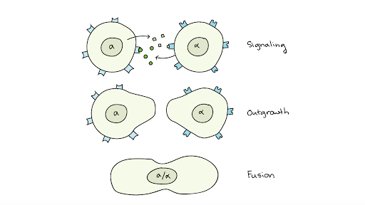 Sometimes, however, yeast cells reproduce sexually by mating. An alteration of morphology such that the cell has a mating projection, formed in response to mating pheromone by cells of saccharomyces and other fungi with. Cerevisiae in what is known as the shmoo phase of cell division (mitosis), with the daughter cell partway through the process of budding off of its parent. Only haploid yeast cells are able to conduct sexual reproduction.
